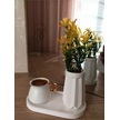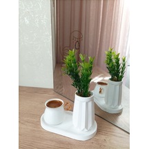Mini Düz Desenli Beton Saksı Tekli Ve Oval Tabak - Yapay Çiçek Hediyeli - Yeşil