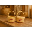 Mini El Yapımı Hasır Sepet 2 Li Dekoratif Süs Sepeti Seti Bej - Sarı