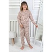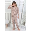 Minik Uyku Avcısı - Vahşi Rahatlık Serisi Leopar Desenli Kız Çocuk Pijama Takımı Kahverengi
