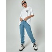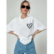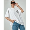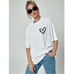 Minimal Kalp T-shirt - Beyaz Baskılı Oversize Bisiklet Yaka Kısa Kol Tişört Beyaz