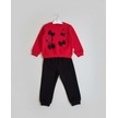 Minnie Mouse Baskılı Ve Fiyonk Detaylı Kırmızı Sweatshirt Siyah Eşofman Altı Kız Çocuk Takımı Kırmızı