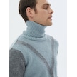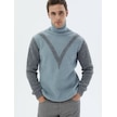 Mint Tam Balıkçı Yaka Desenli Yün Karışımlı Triko Mint