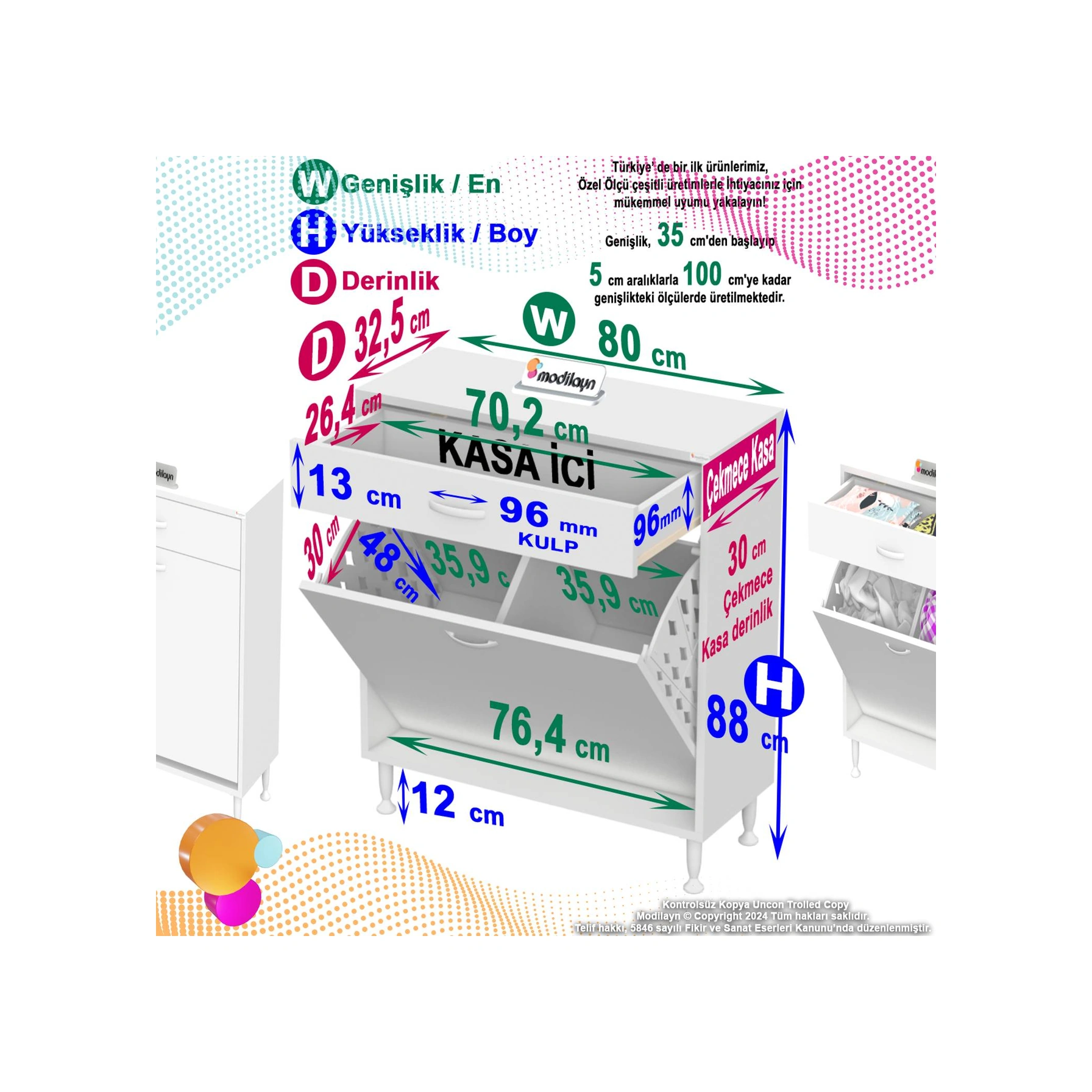 Mira 2 Göz Sepetli Dolap Sebzelik Düzenleyici Dolap 80x88x32,5 Cm Beyaz