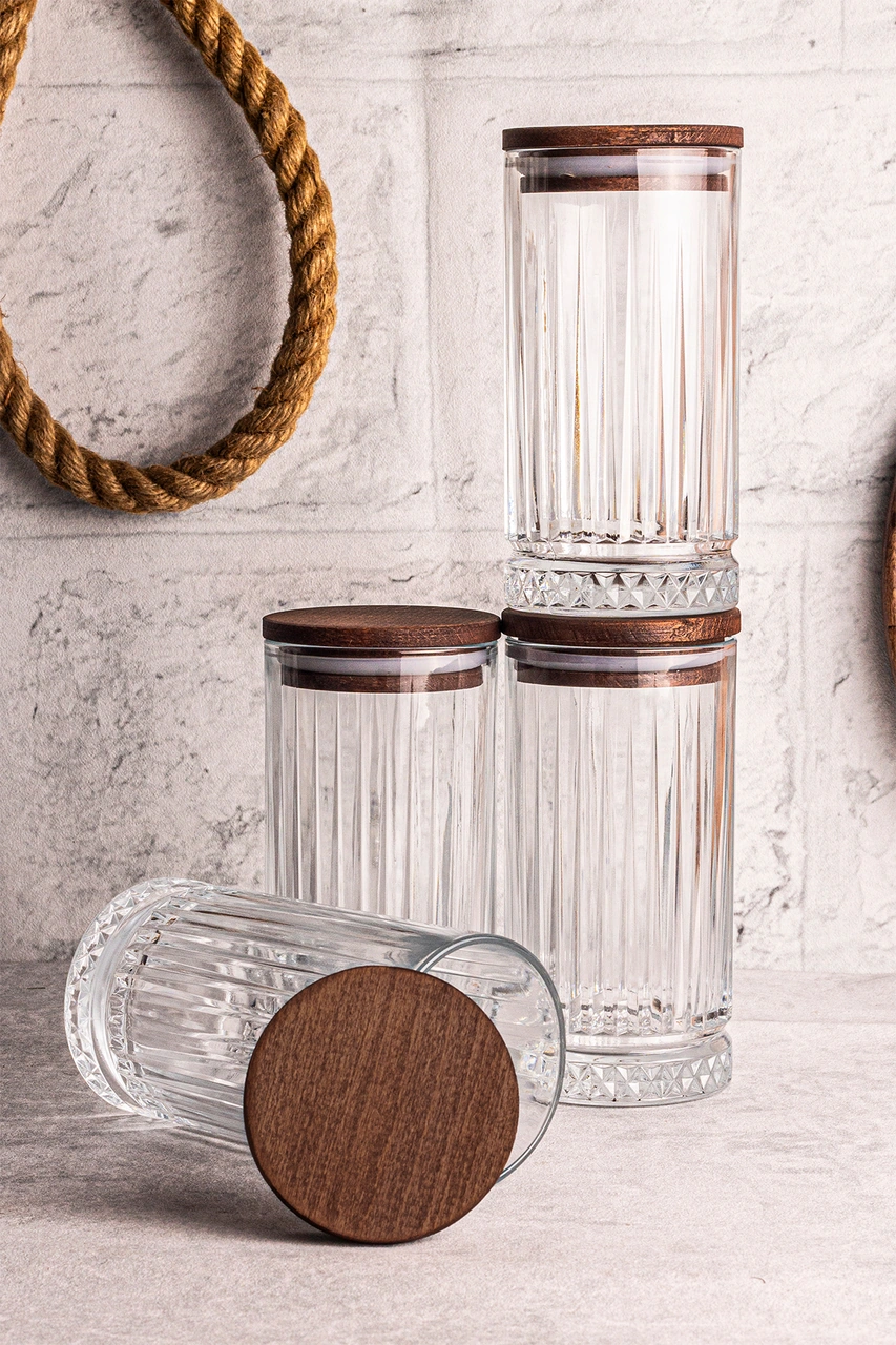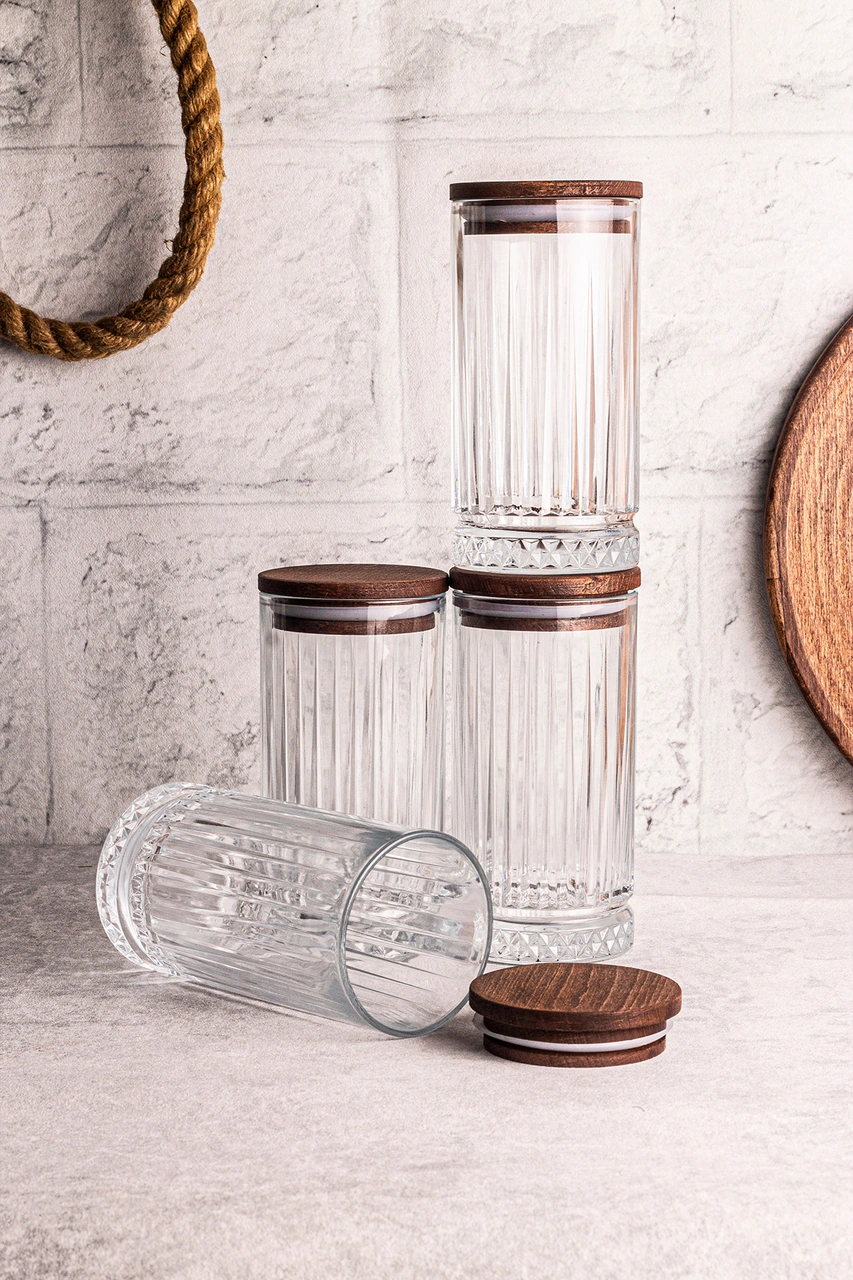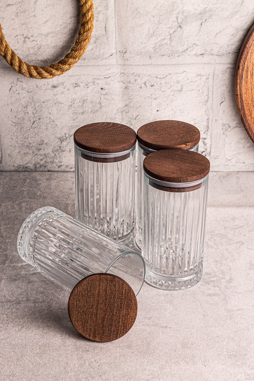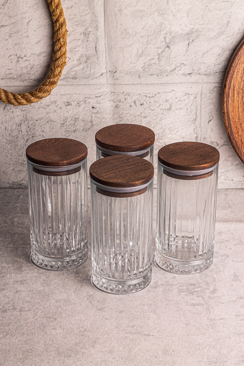 Mira 4'lü Ahşap Vakumlu Kapaklı Cam Saklama Kabı 450 Ml 4 Adet Ahşap