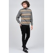 Mısırlı Erkek Tam Balıkçı Çizgili Yün Kazak 3869077 Gri Gri