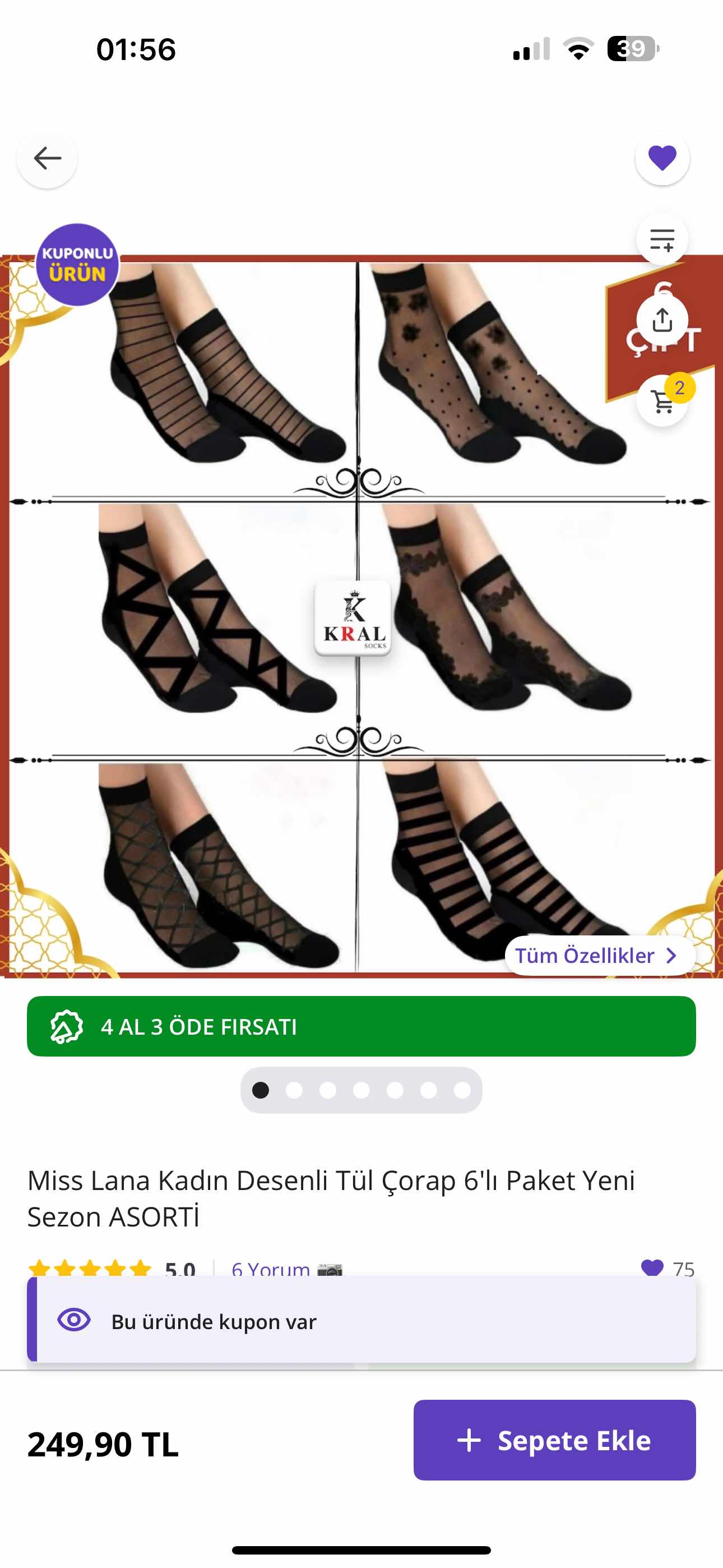 Miss Lana Kadın Desenli Tül Çorap 6'lı Paket Yeni Sezon ASORTİ