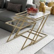 Misto Z Şekil Camlı Üçlü Zigon Sehpa Gold