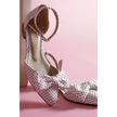 Misty Beyaz Puantiyeli 2 Cm Topuklu Bilekten Bantlı Sivri Burun Günlük Babet Beyaz