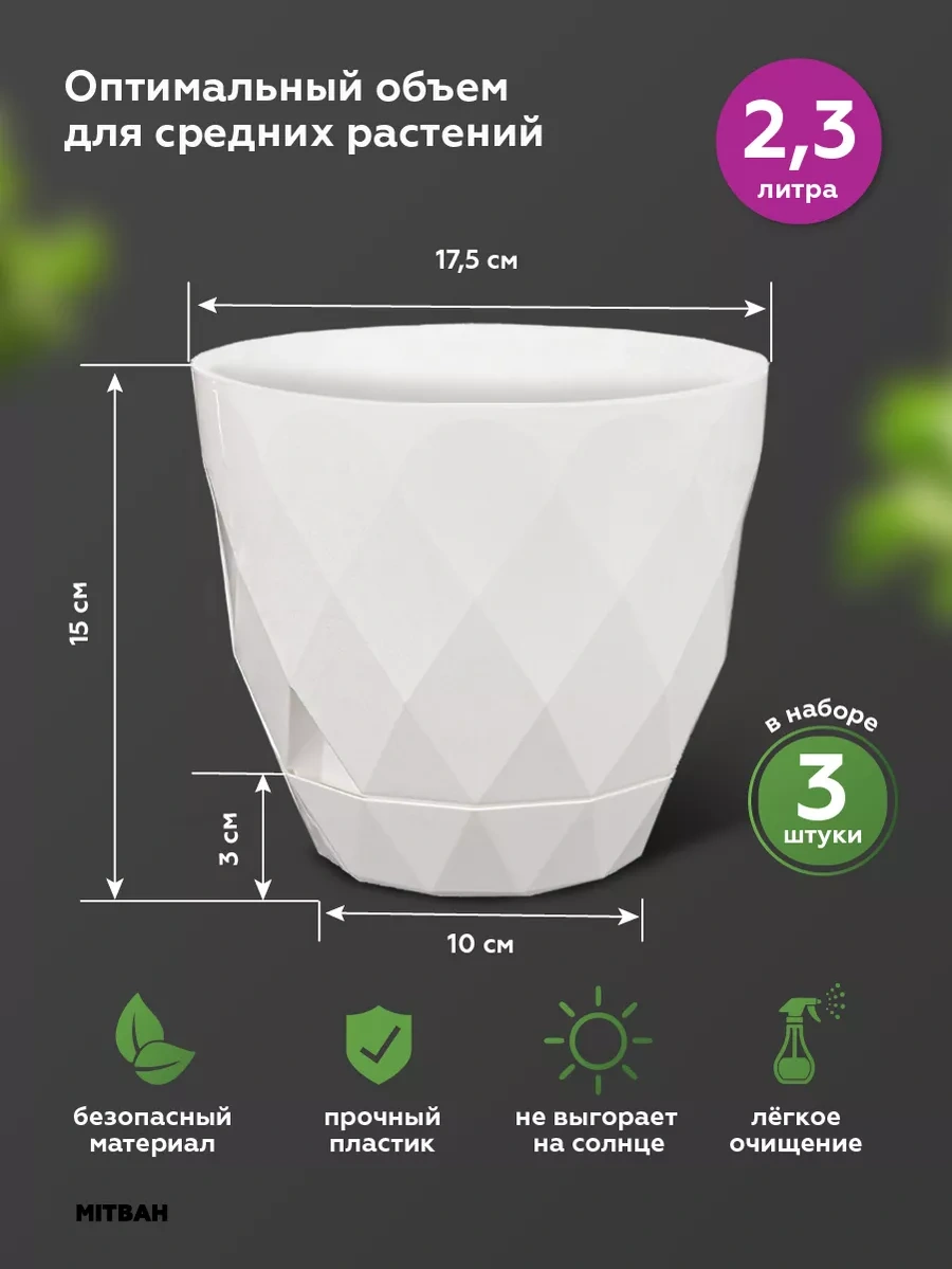 Mıtbah Çiçek Ve Bitkiler İçin Saksı Kashpo 3 Adet 2,3 Litrelik 179436423
