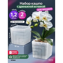 Mıtbah Şeffaf Kare Orkide Saksısı, 2 Adet, 1,2 L 399165392