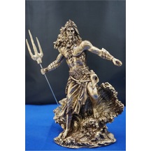 Mitolojik Tasarım Poseidon - Ev Ofis Dekoratif Hediyelik Aksesuar 26 Cm Bakır