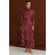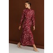 Mizalle Bordo Desenli Evaze Uzun Saten Etek Bordo
