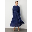 Mizalle Kat Pileli Maksi Lacivert Elbise Lacivert