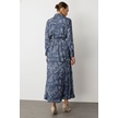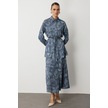 Mizalle Mavi Desenli Evaze Uzun Saten Etek Mavi