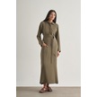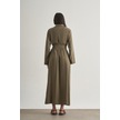Mizalle Modal Karışımlı Kuşaklı Haki Uzun Gömlek Elbise Haki
