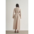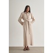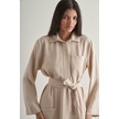 Mizalle Modal Karışımlı Kuşaklı Taş Rengi Uzun Gömlek Elbise Taş