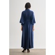 Mizalle Tencel Dokulu Pile Detaylı Kemerli Maksi İndigo Mavi Elbise Indigo