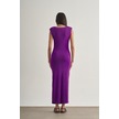 Mizalle Yan Büzgü Detaylı Vatkalı Uzun Kolsuz Mor Bodycon Elbise Mor