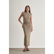 Mizalle Yan Büzgü Detaylı Vatkalı Uzun Kolsuz Vizon Bodycon Elbise Vizon