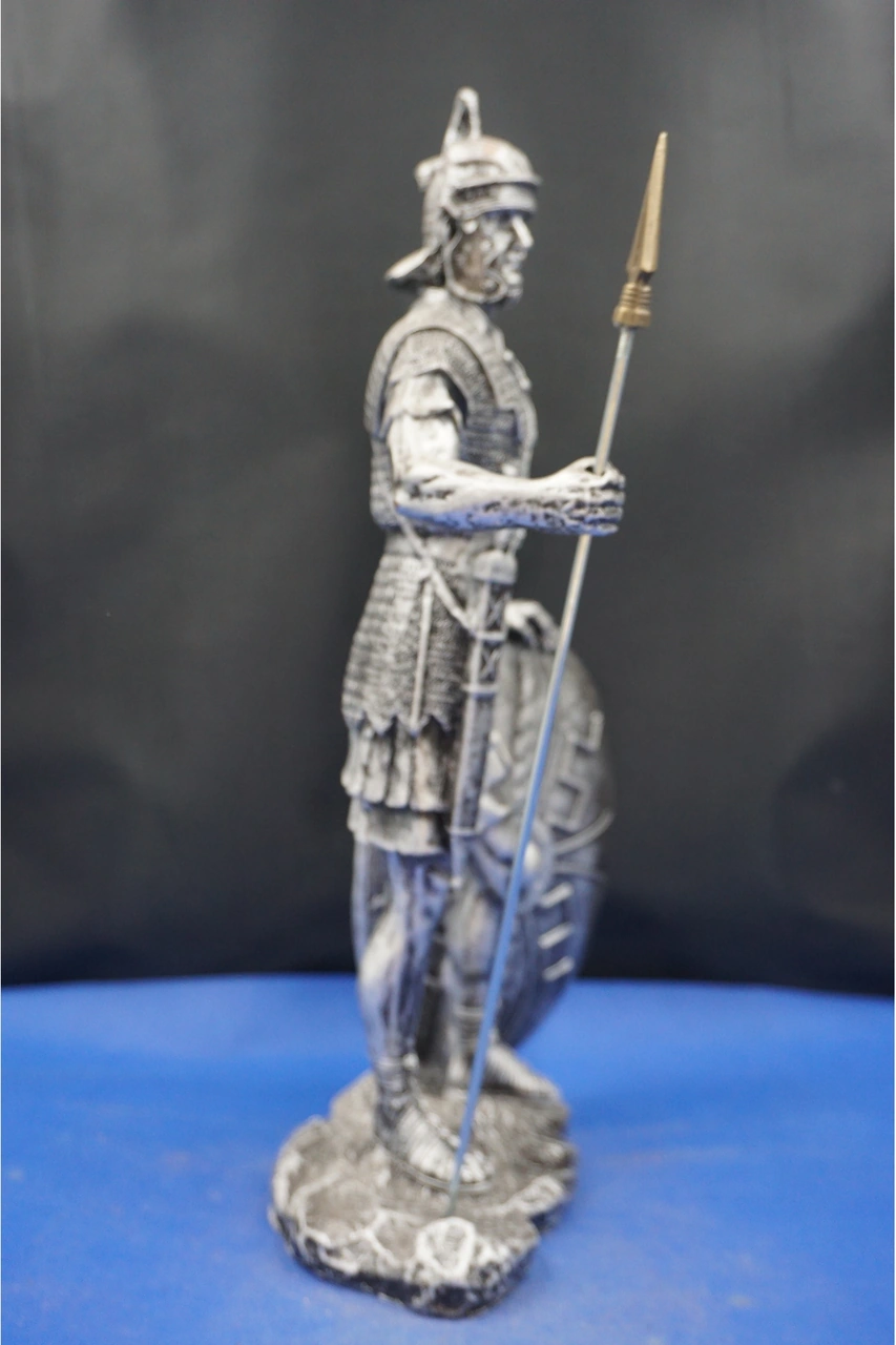 Mızrak Ve Kalkanı İle Roma Savaşçı Heykeli Biblo Ev Dekor & Hediyelik Aksesuar 32 Cm Gümüş