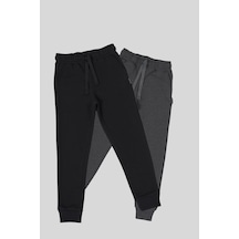 Mmetalic Siyah-antrasit Kalın Pamuklu Beli Ve Paçası Lastikli Cepli 2'li Kız Çocuk Eşofman Altı 001