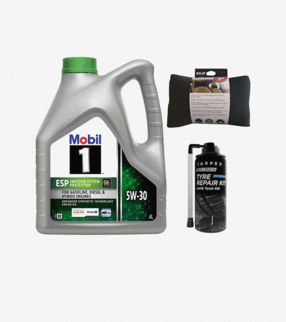 Mobil 1 5W-30 Motor Yağı 4 L + Gojo Koltuk Yastığı + Carpex Lastik Tamir Kiti