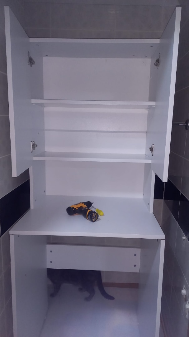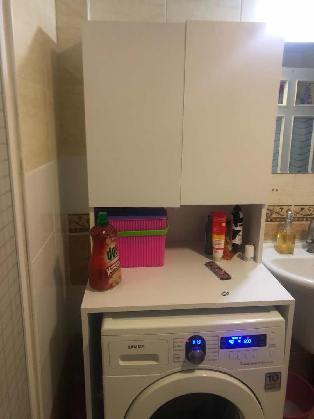 Mobilya Çamaşır Makinesi Dolabı 3 Raflı Kapaklı Banyo Dolabı Beya Beyaz