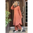 Tesettür İkili Takım Uzun Tunik Bol Paça Pantolon 4006-kahve Kahverengi