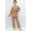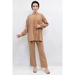Tesettür İkili Takım Uzun Tunik Bol Paça Pantolon 4006-kahve Kahverengi