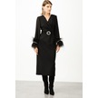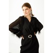 Moda İlgi Kadın Kolları Pliseli Manşeti Otrişli Uzun Elbise B06528 Siyah Siyah