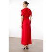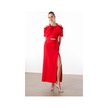 Moda İlgi Kadın Yakası Ve Kemeri Aksesuar Detaylı Elbise 0007 Kırmızı Kırmızı