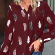 Moda Kadın Bluz Gömlek Kadınlar İçin Şık Üst Uzun Kollu Tüy Desenli Kadın Üstleri Zarif Şifon Kadın Giyim Şarap Kırmızısı