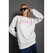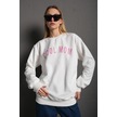 Modagen Kadın Beyaz Cool Mom Baskılı Bisiklet Yaka Oversize Sweatshirt Beyaz