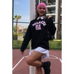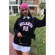 Modagen Kadın Bisiklet Yaka Pembe Atlanta Baskılı Siyah Oversize Sweatshirt Siyah