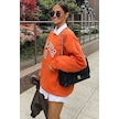 Modagen Kadın Bisiklet Yaka Turuncu Atlanta Baskılı Oversize Sweatshirt Turuncu