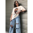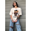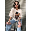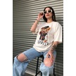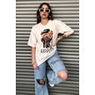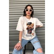 Modagen Kadın Happier Oversize Baskılı Bej T-shirt Hp Bej