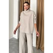 Modagen Kadın Selanik Kumaş Balıkçı Yaka Alt Üst Takım Bej