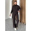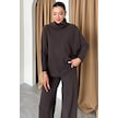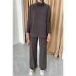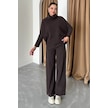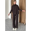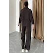 Modagen Kadın Selanik Kumaş Balıkçı Yaka Alt Üst Takım Kahve