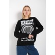 Modagen Kadın Siyah Berkeley Baskılı Bisiklet Yaka Oversize Sweatshirt Siyah