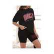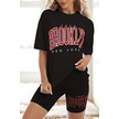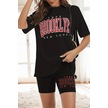 Modagen Kadın Siyah Brooklyn Baskılı T-shirt Tayt Takım Siyahh