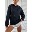 Modagen Kadın Siyah Love Baskılı Oversıze Kapüşonlu Sweatshırt Siyah
