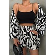 Modagen Kadın Zebra Desenli Kimono Şort Alt Üst Takım Siyah Beyaz