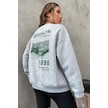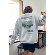 Modagen Unisex Gri Brooklyn 1898 Baskılı Bisiklet Yaka Oversize Sweatshirt Gri