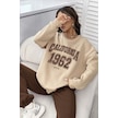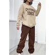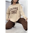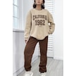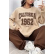 Modagen Unisex Kahverengi Bej Bisiklet Yaka California Baskılı Alt-üst Eşofman Takımı Kahve-bej