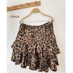 Modaonna Kat Detaylı Leopar Desen Saten Etek Kahverengi
