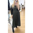 Keten Elbise Kolsuz Bel Bağlamalı Maxi Elbise - Kahverengi Kahverengi