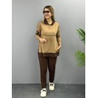 Modaserdem Kadın Kahve Kapşonlu Etek Ucu Detay Arma Ters Dikiş Gorunumlu Ikili Takım Sütlü Kahve