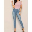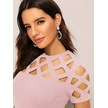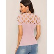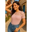 Modaserdem Kadın Kısa Kollu Baklava Desen Lazer Kesim Ithal Krep Bluz Pembe