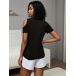 Modaserdem Kadın Kısa Kollu Tek Omuzu Açık Damla Detaylı Viskon Bluz Siyah