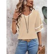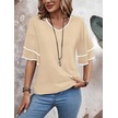 Modaserdem Kadın Kısa Kollu V Yakalı Viskon Bluz Bej